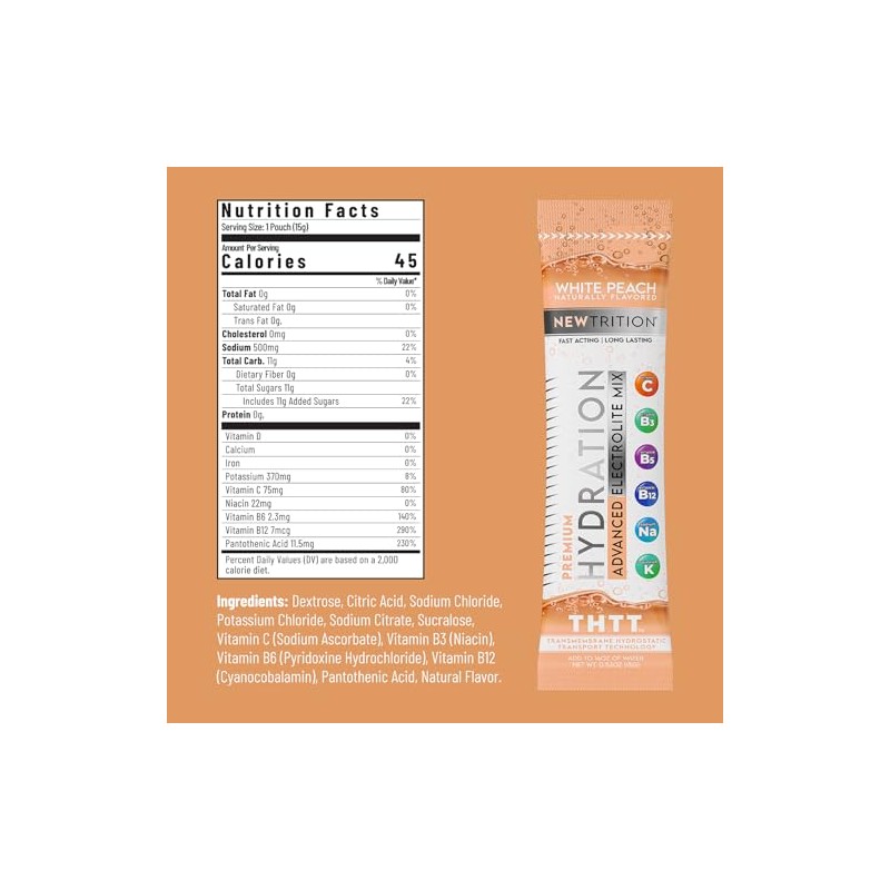 - Electrolyte Drink Powder Packets: NewTrition’s hydration packets transform your regular water into a super-hydrating drink, helping you stay hydrated faster and better than water alone