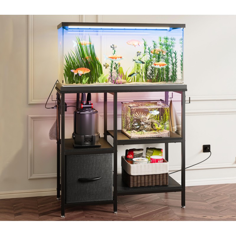 - Power Outlet: With an integrated charging station, this aquarium stand ensures effortless power access for your pumps, lights, and other electrical equipment. This feature helps maintain a tidy and organized setup, enhancing the overall aesthetic of your aquarium area.