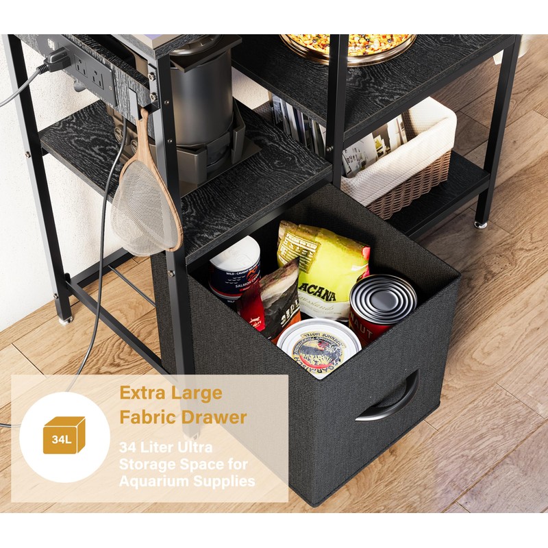 - Frabic Drawer: The fabric drawer at the base boasts a height of 13.4 inches, offering generous space to store cleaning tools, fish food, and other essential accessories. This spacious drawer helps maintain a neat and organized aquarium setup, enhancing the overall look and functionality of the area