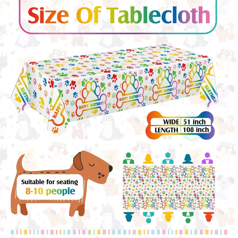Reliable and Long Lasting: the paw tablecloth is mainly made of PE plastic material, waterproof and reliable, lightweight and portable, strong and sturdy, not easy to break or tear, and can maintain luster for a long time, providing a nice performance throughout your party