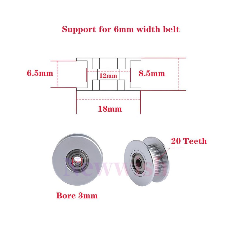 - 20 Teeth 3mm Bore Aluminum GT2 Idler For GT2 6mm Width Timing Belt,Easy to install.Use Double bearings Motor-grade bearings to ensure that the machine is works good.