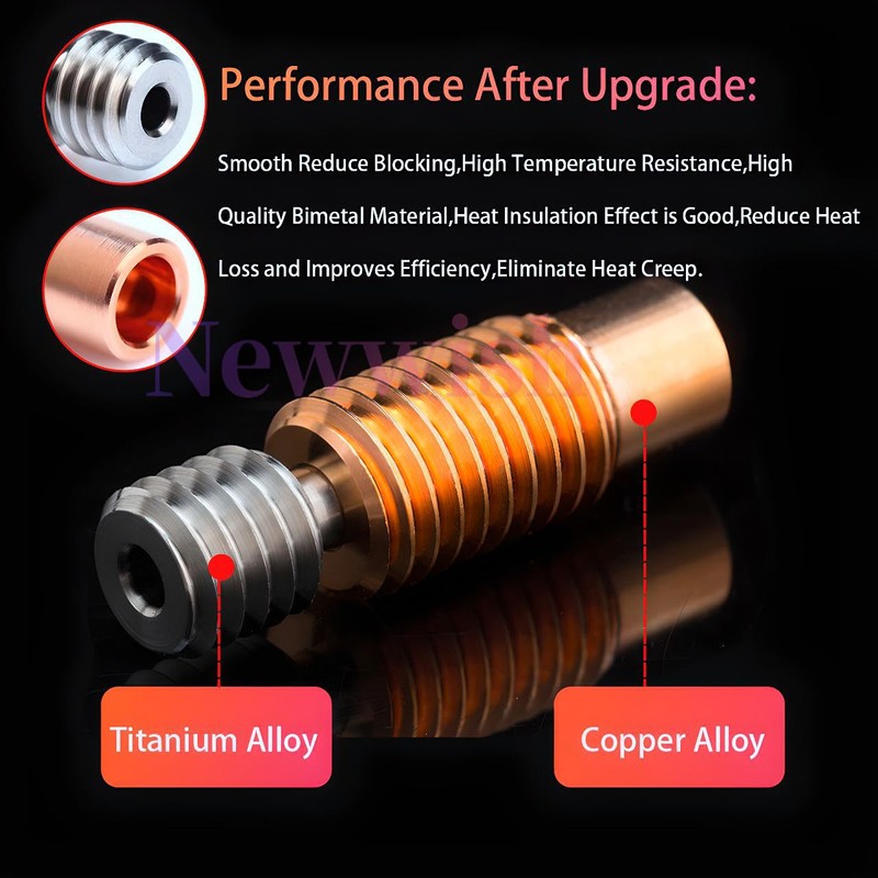 - The front end of the V6 Bi-Metal Heatbreak is made of high-quality GRADE5 titanium alloy and the rear end is made of copper alloy material,We use a special process to hold them firmly together. You don't need to worry about it being damaged.