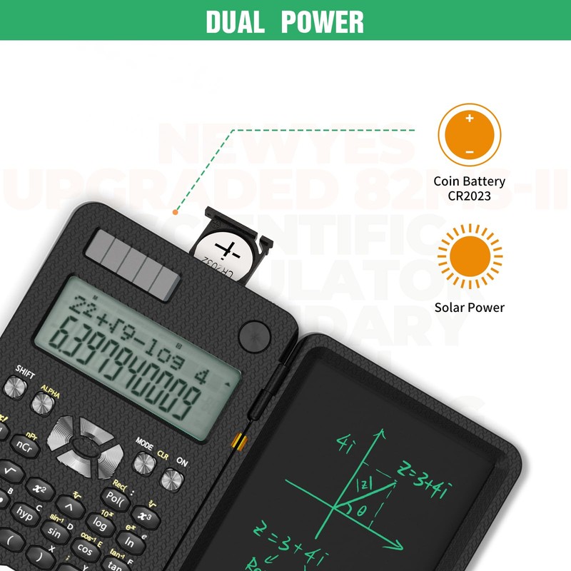 NEWYES Faltbarer WissenschaftlicheTaschenrechner, 2-Zeilen-Display 240 Funktionen mit Schreibtafel und Stift, Wissenschaftlicher Taschenrechner für Schüler und Studenten