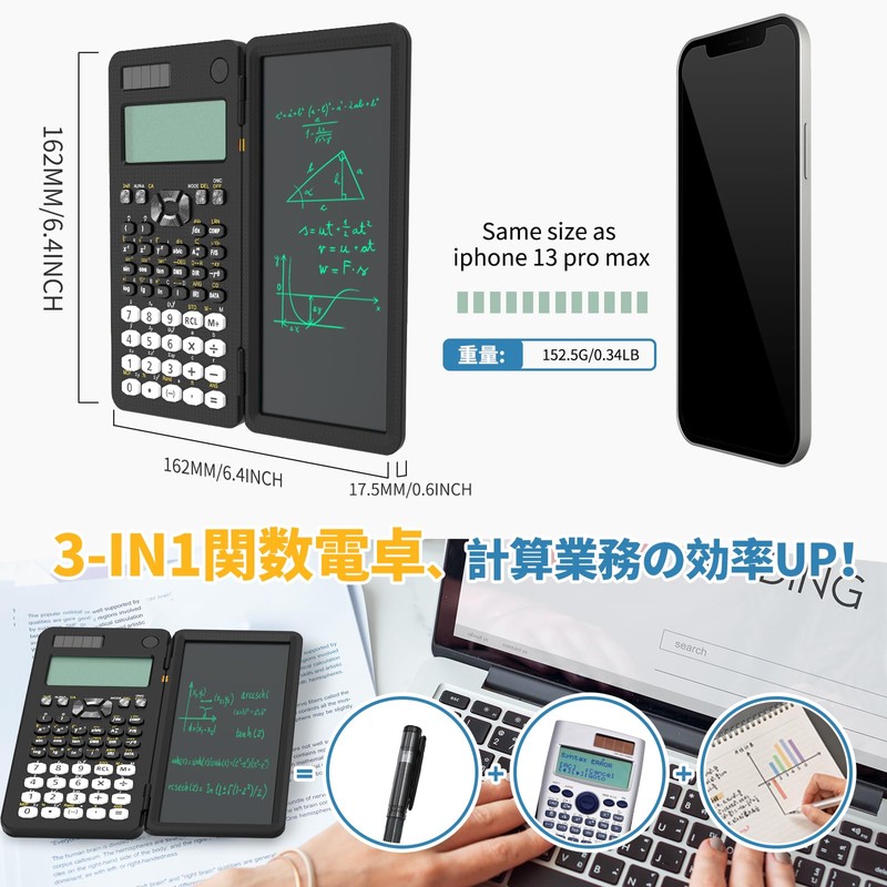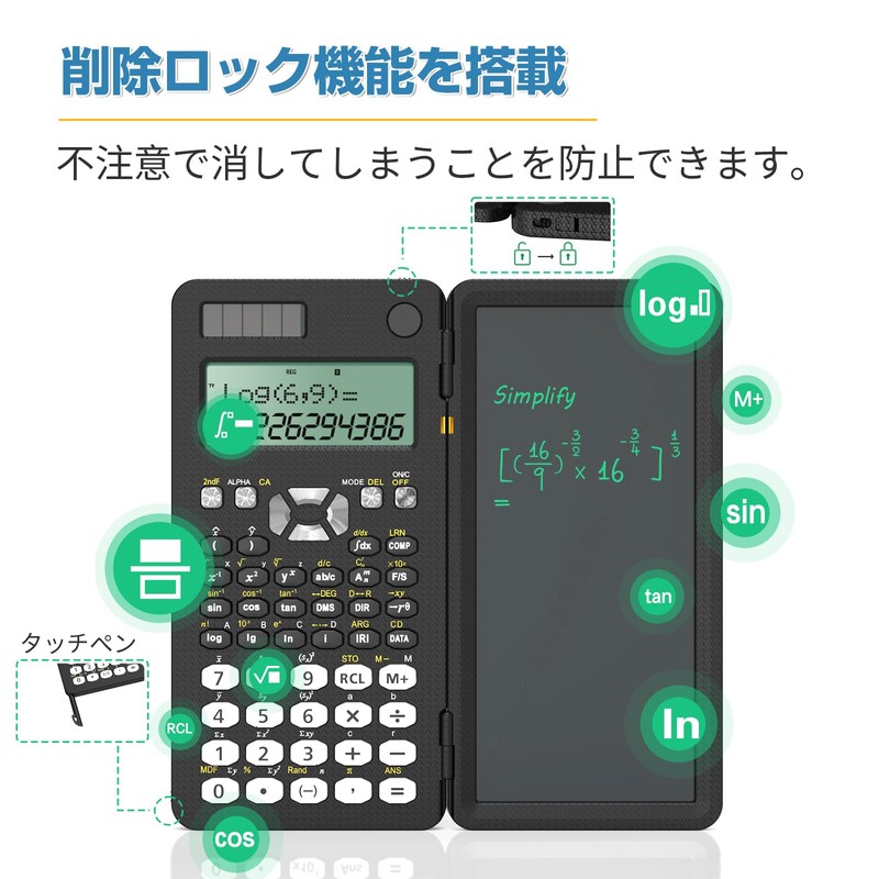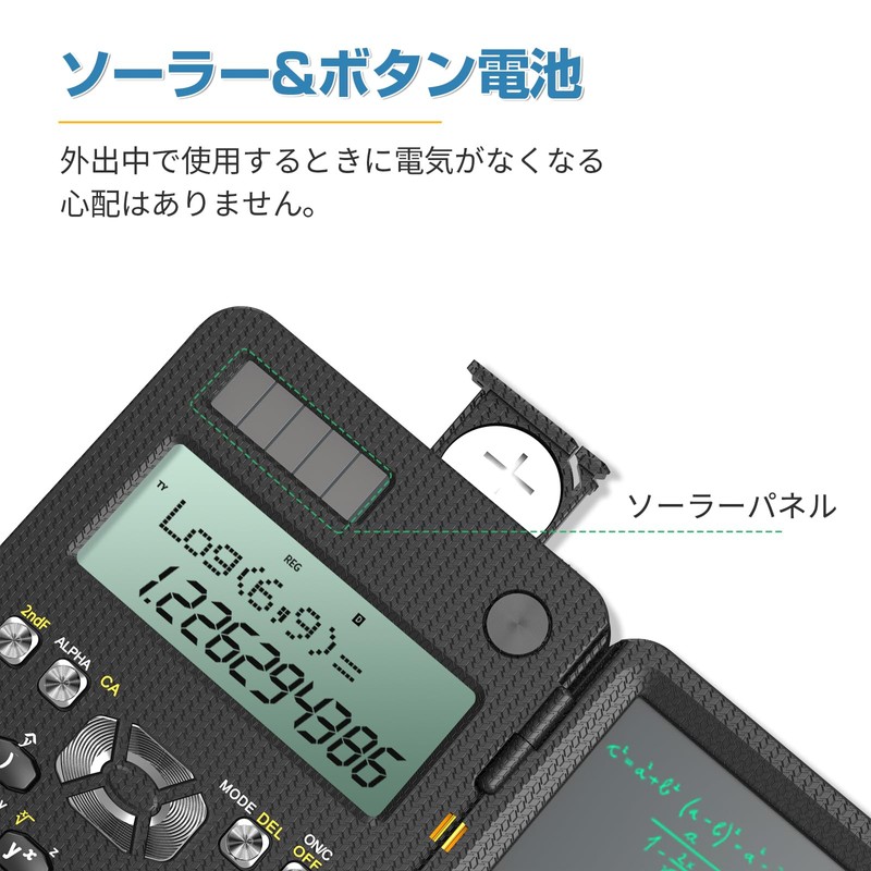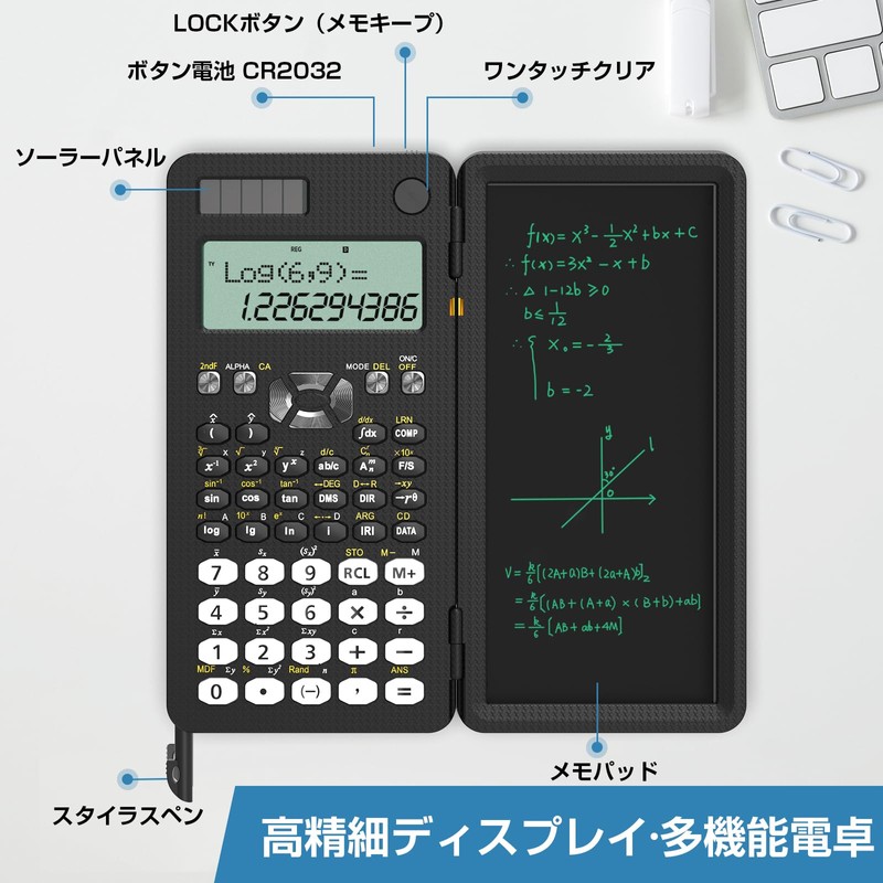 - 5. Pen Pressure Sensing/Dual Power Supply: The memo pad has a pressure gravity sensor function, which changes the thickness of the writing depending on the pressure of the pencil. When you take notes, you can write with strength and make the letters thicker and make important notes visible at a glance. The function calculator is compatible with solar charging and button battery replacement, so you don't have to worry about sudden power off when you are on the go. Just put it in the sun and wait for a while, or replace the batteries and you can continue using the calculator