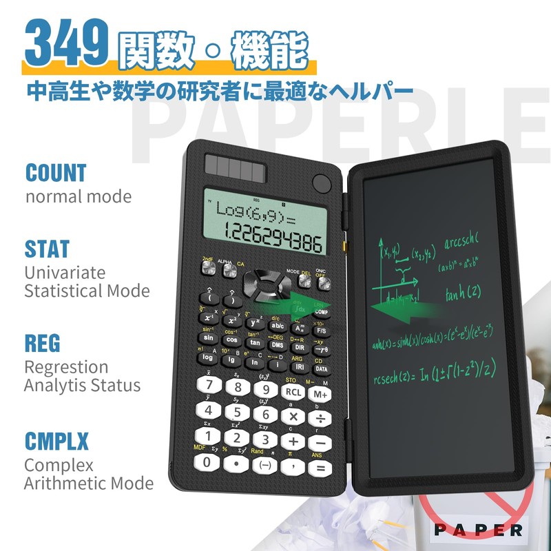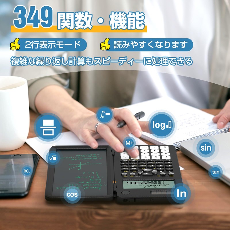 NEWYES Scientific Calculator, Electronic Memo Pad with Calculator, 349 Functions, Calculus, Statistical Calculation, Natural Mathematics, Electronic Calculator, 2-Digit Display, Scientific Calculator, Solar, Calculation, Science, Mathematics, Constructio