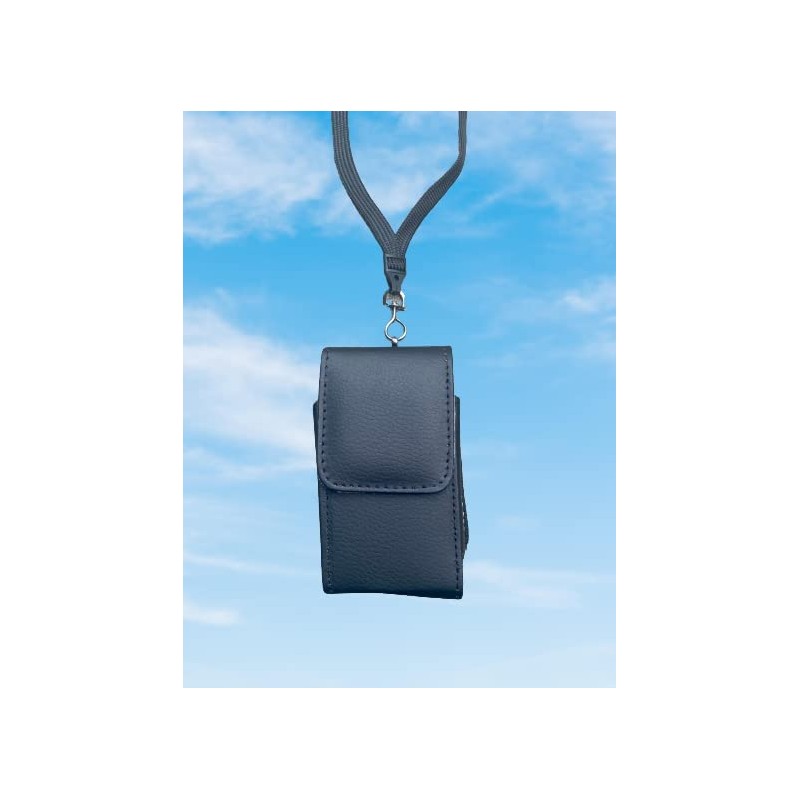 Newyorkcellphone Compatible with Consumer Cellular Iris Easy Flip - Around The Neck Black Leather Case with Safety Lanyard