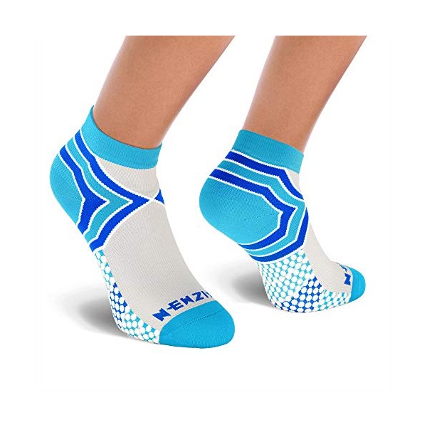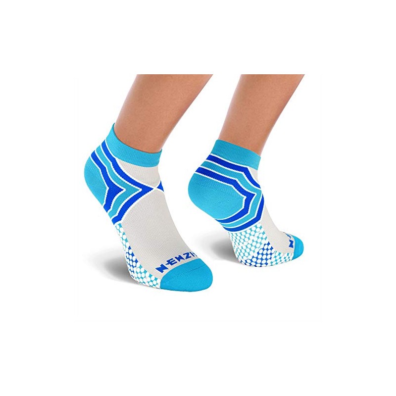 NEWZILL Low Cut Compression Socks - Unisex Running Socks With Embedded Frequency Technology For Heel, Ankle & Arch Support (Small, Light Blue/Grey)