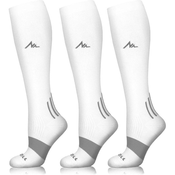 NEWZILL Medical Compression Socks for Women & Men Circulation 20-30 mmHg, Best for Running Athletic Hiking Travel Flight Nurses 3-Pairs White XS