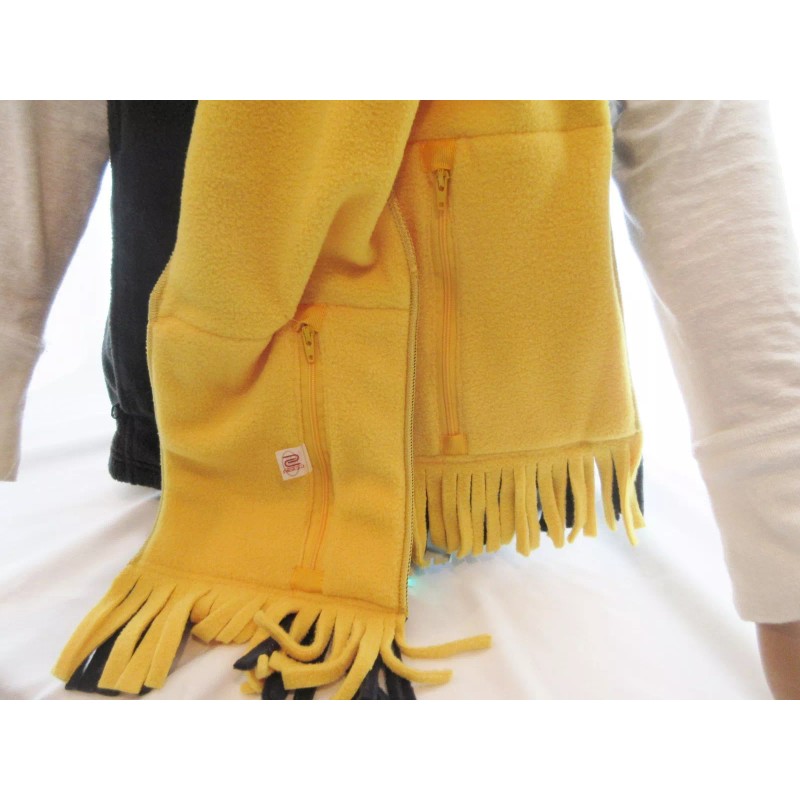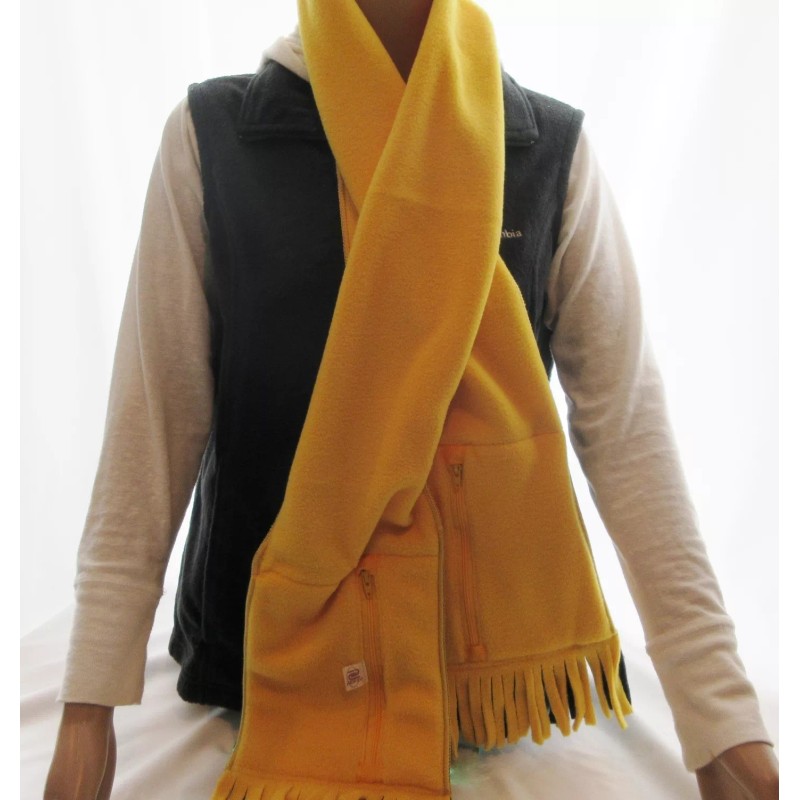 This unique 62" X 7" polar fleece scarf has both pockets and zippered pockets. Great for going to the game and having secured zippered pockets.