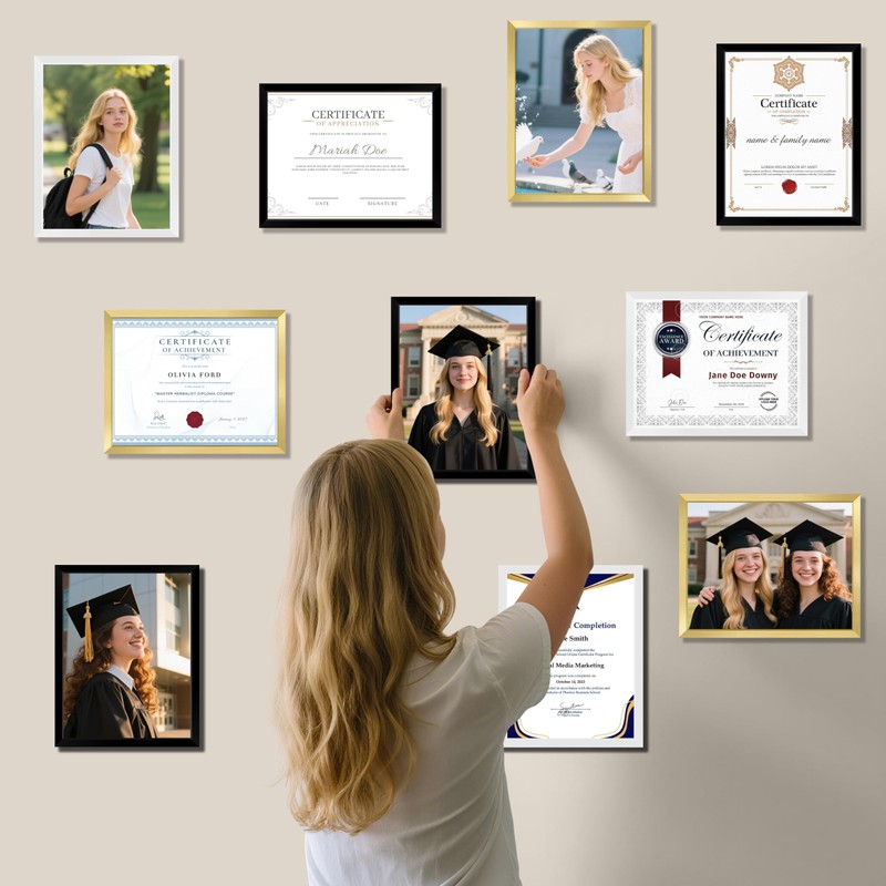 - NEXCOVER Diploma Frame Set: This certificate frame set contains 10 pieces of 8.5x11 inches minimalist photo frame, suitable for most diplomas, degrees, qualifications, etc., which could provide a full protection and clear presentation of your important documents.