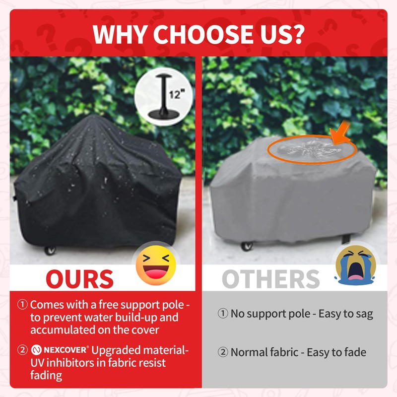 - Support Pole Make a Meaningful Difference: NEXCOVER griddle cover 36 inch is equipped with a 12"H support pole, this griddle accessory prevents the barbecue cover from contacting the oil-coated griddle surface, thus preventing water and debris buildup. It ensures that your grill griddle remains dry and ready for use.