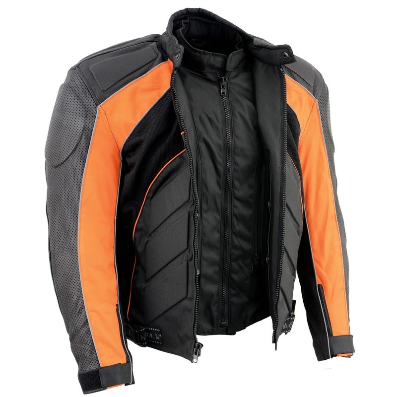 NexGen SH2153 Men's Black and Orange CE Armored Motorcycle Textile and Leather Combo Jacket - X-Large