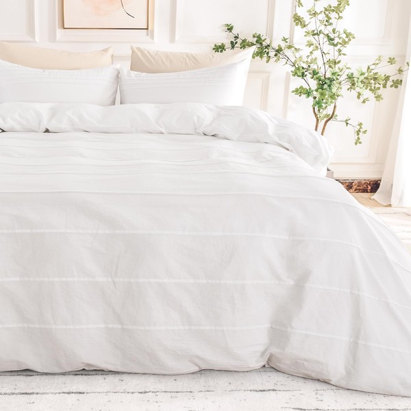 - NATURAL COLOR WITH PLEATED DESIGN, CASUAL AND UNIQUE: Elegant solid color duvet cover together with your bedroom decor to create a cozy environment. The pleated design gives simple bedding some highlights, casual and unique.