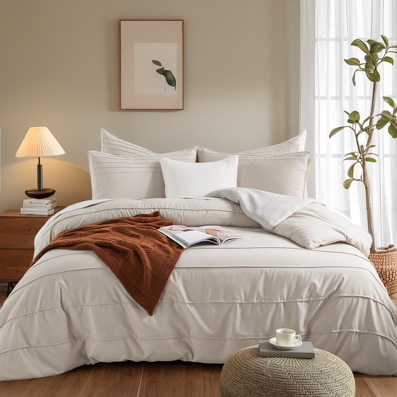 - NATURAL COLOR WITH PLEATED DESIGN, CASUAL AND UNIQUE: Elegant solid color duvet cover together with your bedroom decor to create a cozy environment. The pleated design gives simple bedding some highlights, casual and unique.