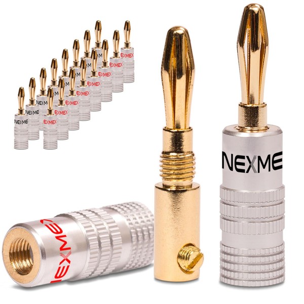 NEXMEX Banana Plug 4 mm – 18 Pieces Plugs as a Set – Connector 24 K Gold-Plated Screwable for Speaker Cable – HiFi Speaker Connection