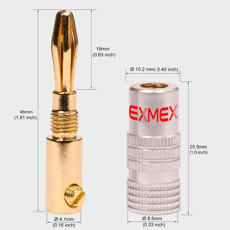 • Compatibility These NEXMEX banana plugs are specially designed to be compatible with speaker cables of various thicknesses from 2.5mm² to 4mm². Thanks to their versatile design, they can be easily used in Hi-Fi systems, home theaters, as well as in domestic and commercial applications.