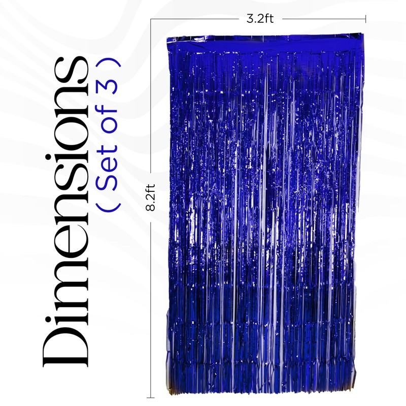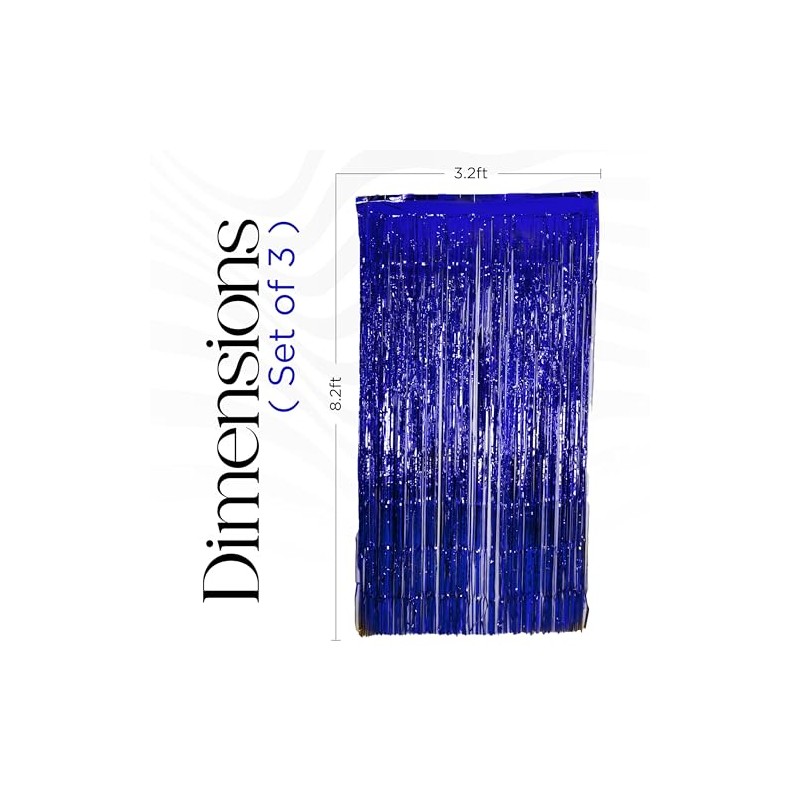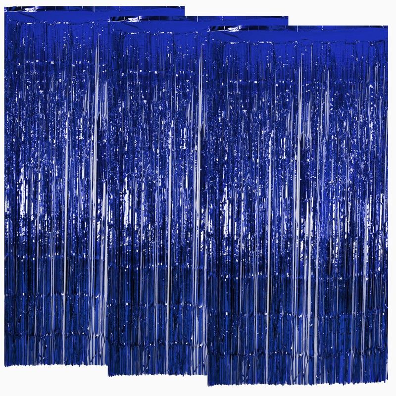 NEXNEOM 3Pcs Blue Foil Curtain Backdrop Curtain 3.2ft X 6.5ft, Door Tinsel Curtains Backdrop, Party Backdrop Decoration for Birthdays, and More