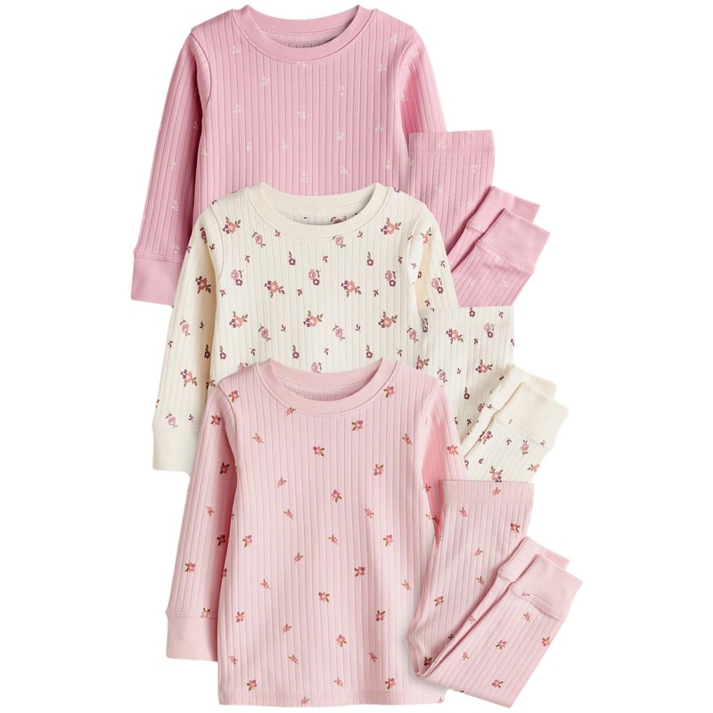 NEXT 3 Pack Floral Pyjamas, Pink/White Ditsy