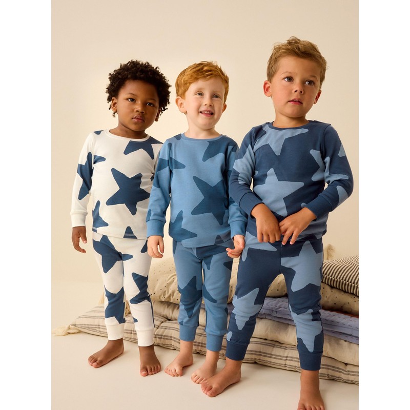 NEXT 3 Pack Long Sleeve Pyjamas, Blue/Navy