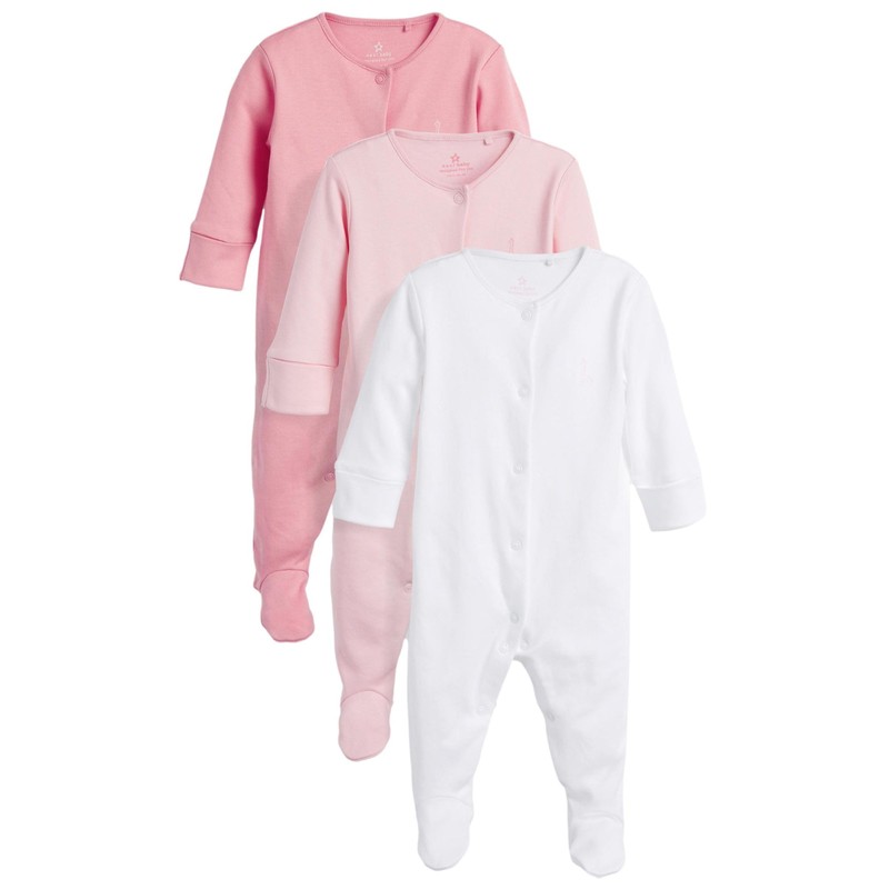 NEXT Baby Cotton Pyjamas Pack of 3, pink / white, 3 - 6 months