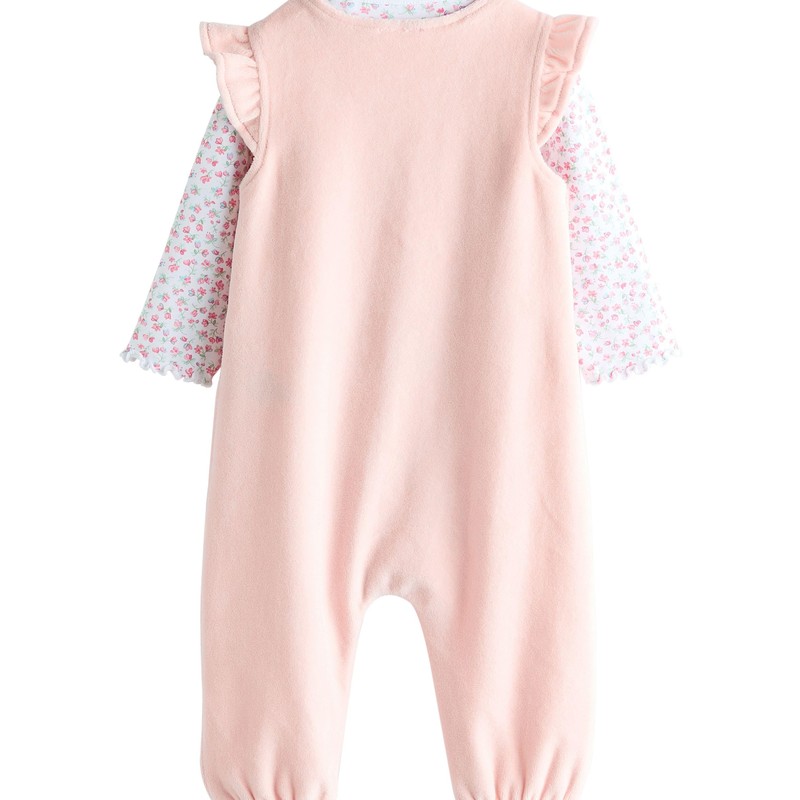 NEXT Baby Dungarees and Long Sleeve Bodysuit Set, pink