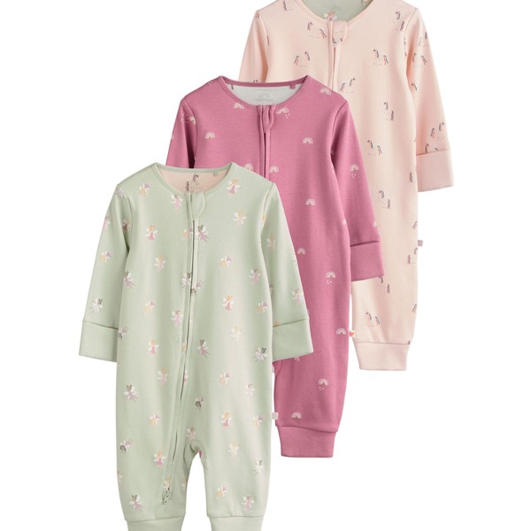 NEXT Baby Foot-Free Ribbed Pyjamas Pack of 3, Pastel Character