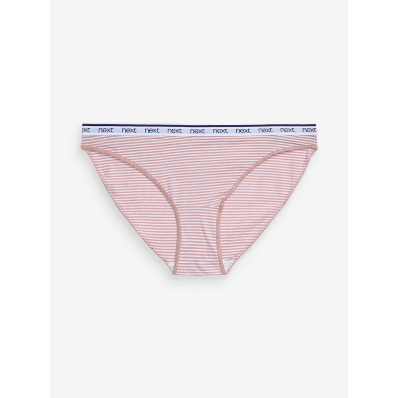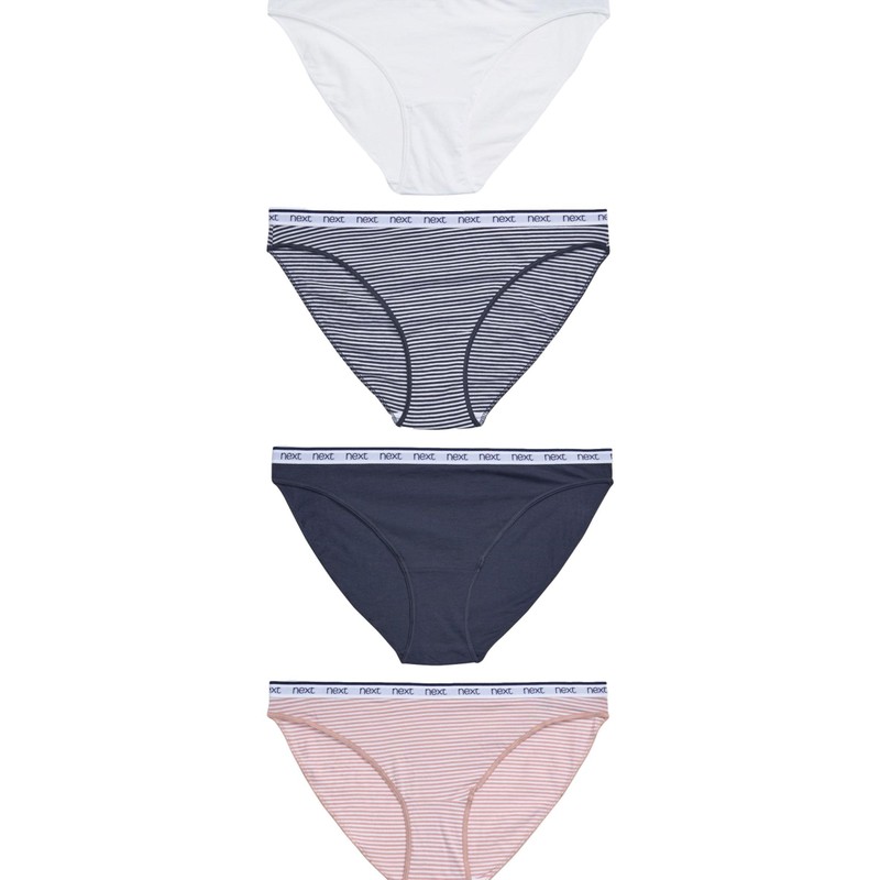 NEXT Cotton Rich V Briefs with Logo (Pack of 4), Pink/Blue Stripe, 40
