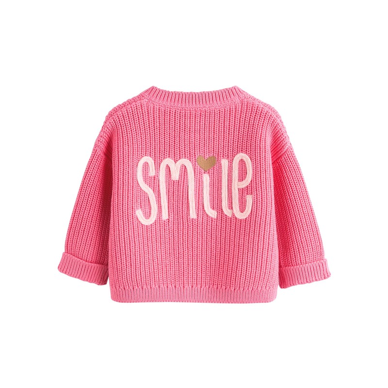 NEXT Smile Baby Cardigan with Button Closure, Pink Smile