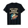 Next Stop Aries Adventure Vintage Zodiac Rocketship Graphic T-Shirt
