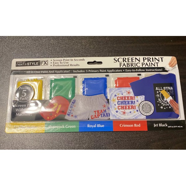 Next Style Screen Print Fabric Paint Black Red Blue Green Yellow creative craft.