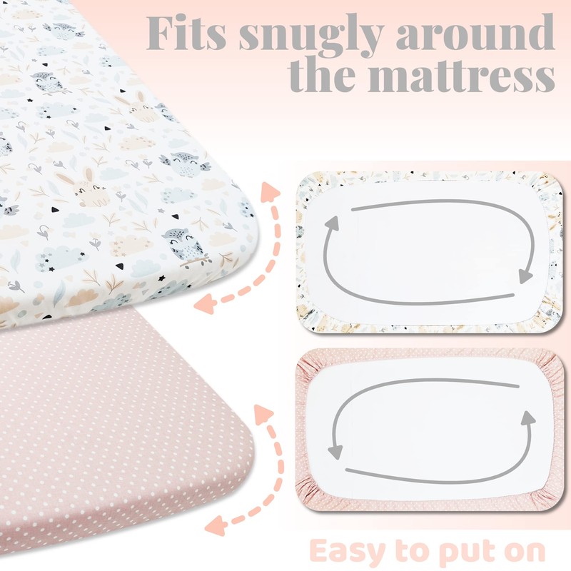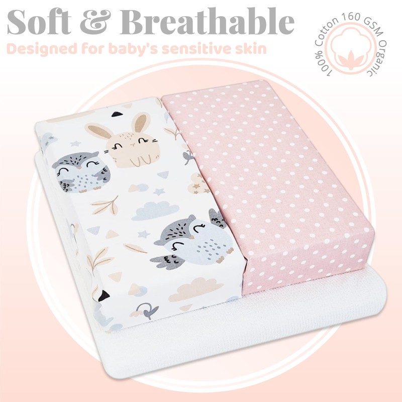 - ✔️ COTTON FITTED CRIB SHEETS - Our fitted crib sheets are a top choice among mothers, thanks to their hypoallergenic properties and gentle touch on your baby's delicate skin. Made from 100% organic cotton that is soft, breathable, and 160GSM in weight, these sheets are designed to fit snugly around the crib mattress for optimal comfort and safety.