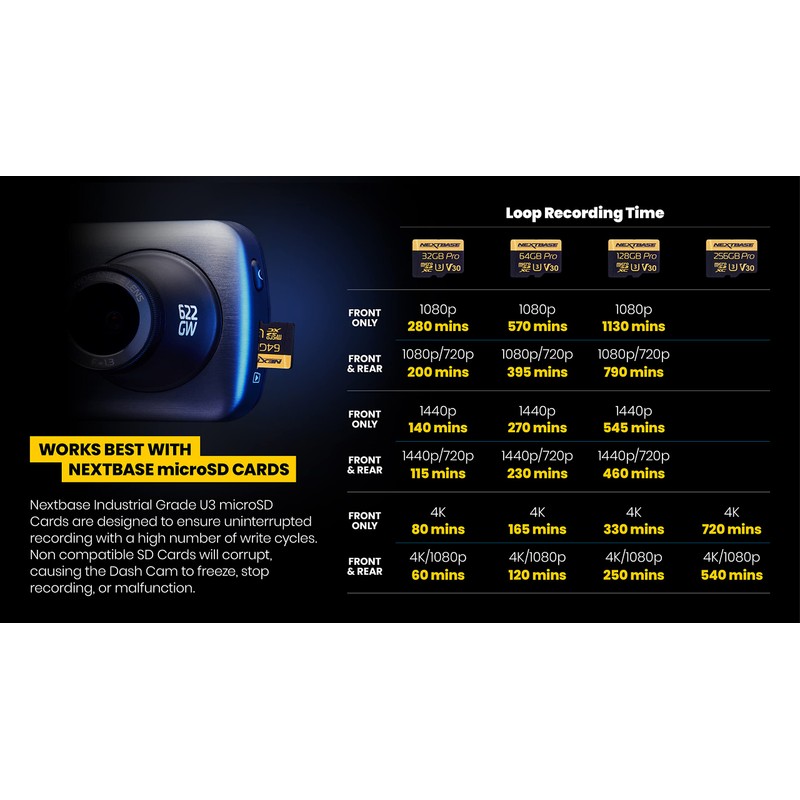 • STAY PROTECTED ON THE ROAD: A Nextbase-specific micro SD memory card is required for your Nextbase dash cam so your footage on the road is recorded and securely stored in case of insurance claims. This means you always stay protected on the road and can have peace of mind whenever you drive.