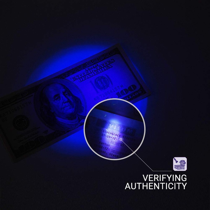 - 【Versatile use】C2UV black light flashlight mini torch has authenticate currency and official documents like drivers licenses or identify unwanted whitening agent in cosmetics
