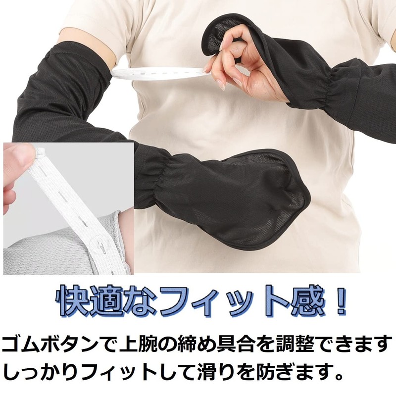 • The elastic buttons on the arm allow you to adjust the tightness even after wearing it for a long time. Finger loops on fingers to secure It also prevents mosquitoes and other insects