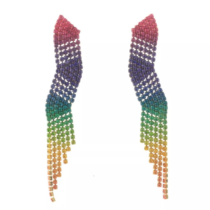 Gold Tone Metal Rhinestone Dangle Post Earrings / Approximate Size: 3.25" L x 0.5" W / Rhinestone / Metal / Lead & Nickel Compliant / Color: Gold & Multi
