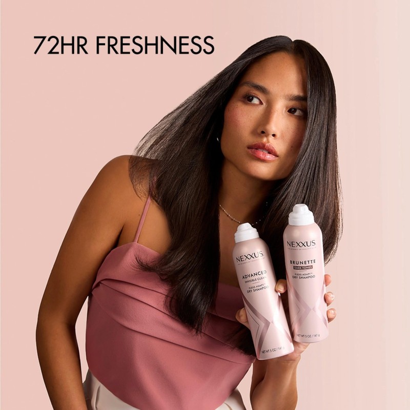 Oil-Proof. Sweat-Proof. Life-Proof Your Hair for Days with Nexxus FLEXX-ADAPT Dry Shampoo. Our smart technology lets you personalize your refresh for your longest-lasting clean hair on your terms! Our innovative FLEXX-ADAPT technology is designed to adapt to your lifestyle – whether it’s after a workout or before a night out - ensuring your hair stays fresh for up to 72 hours. Whenever it detects malodor from sweat and oil, FLEXX-ADAPT re-activates, releasing a boost of odor-neutralizing freshness. Plus this dry shampoo, infused with our signature Styling fragrance, adds a light and refreshing scent of rose and waterlily with sparkling citrus notes. Extend your style with no washing and no weigh-down. Our dry shampoo is enriched with natural, scalp-friendly tapioca cleansers that are lightweight and color-safe, ensuring zero buildup or dull residue is left behind. Powered by our advanced optical 'shade-match' technology, this brunette-tinted cleansing formula is designed to enhance vibrancy of all dark shades, seamlessly blending into roots for an instant, color-enhancing touch-up with no white cast. Born in salons and perfected by science, our Nexxus collections were crafted by our team of expert scientists and stylists. At Nexxus, we understand that the health of your hair is an important part of designing your perfect style. That’s why our Dry Shampoo Collection was designed to layer with our Styling & Finishing Sprays Collection, delivering long-lasting clean hair with effortless style that lasts & weightless protection that stays.