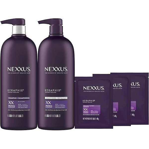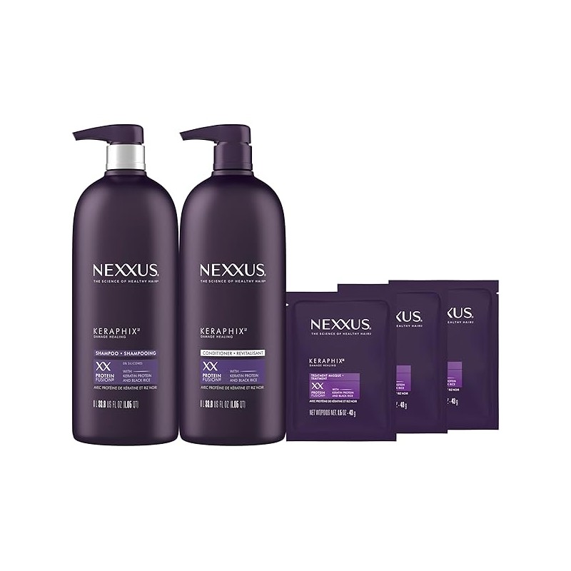 Nexxus Keraphix Shampoo and Conditioner - Damaged Hair Treatment System with Keratin Protein and Black Rice, 2 Count & 3 Repair Masks Treatment, 33.8 oz, 1.5 oz, 3 Count, 5 Count ( Pack of 1)