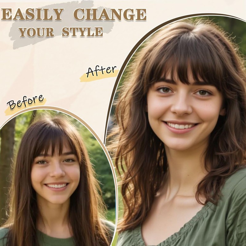 - 【Easy to Wear】Hair topper with bangs is equipped with 3 anti-slip clips, it can be put on or taken off in seconds, which is convenient, safe and comfortable. Clips are small and lightweight, more invisible, even if the front hairline thinning is not easy to notice, very natural, hide your little secret, bloom your beauty.
