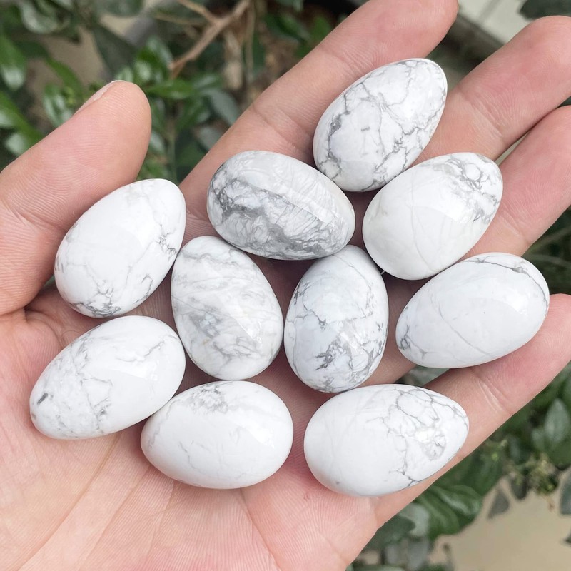 Neyisaa 4Pcs Mini Stone Egg Shaped Figurine, Polished Easter Eggs Sphere Sculpture Crafts for Decoration Fengshui Healing Chakra Reiki, White Howlite Turquoise