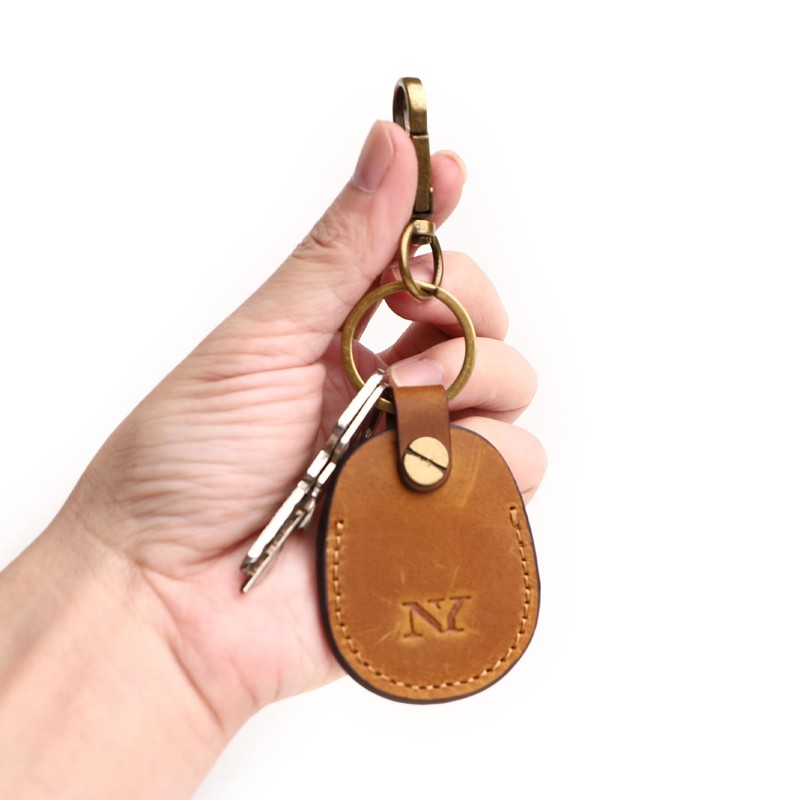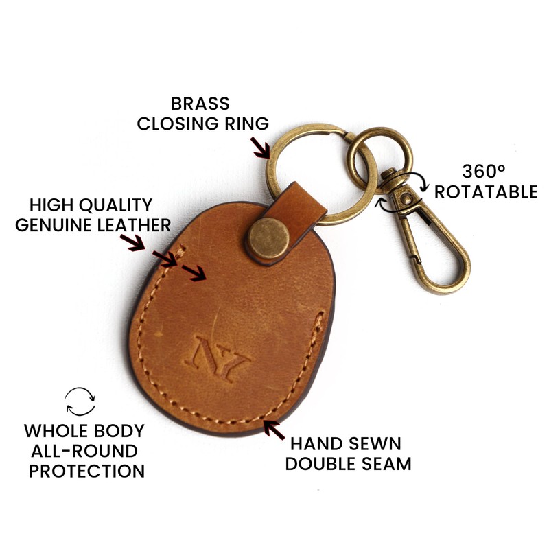 NEYYOS - Airtag Anhänger aus Echtem Leder, Air Tag Tracker, Hülle Tragbar & Schlüsselanhänger, Schutzhülle Schlüsselfinder, Holder, Keychain Halter Case für Schlusselbund (Braun, B)