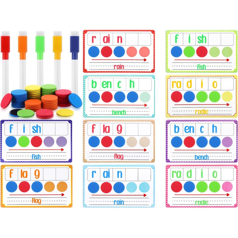 - Phonics Manipulatives Kit: this set includes 10 soft magnetic boards, 50 round magnetic buttons in blue, green, red, orange, and yellow, and 5 corresponding color magnetic pens; With such a generous quantity, it provides ample resources for interactive learning and engagement