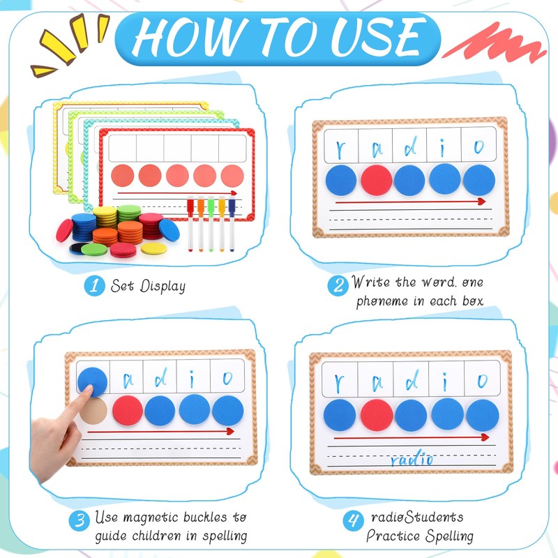 - Educational Gift Idea: designed to encourage deliberate pronunciation and aid in phoneme segmentation, this science of reading manipulatives set makes for an ideal educational gift; It can help learn phonics, practice reading and spelling skills, build confidence, develop language and expand children's vocabulary; The colorful magnetic buttons facilitate marking individual phonemes, nurturing children's phonemic awareness skills