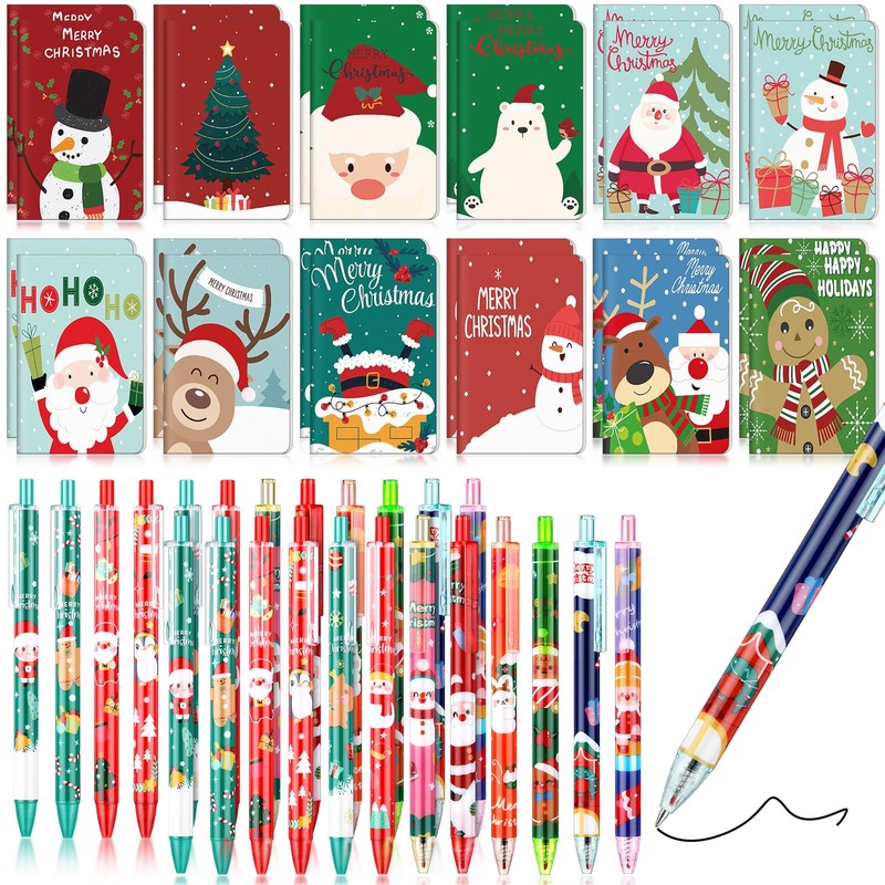 - Mini Christmas notebook and original pen set: this set contains 24 mini Christmas notebooks and 24 black ink pens in 12 styles; They provide sufficient quantity and variety for your daily needs and replacements or sharing with friends and colleagues