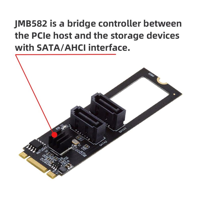 NGFF Key B+M PCI Express to SATA 3.0 6Gbps Dual Ports Adapter Converter Hard Drive Expansion Card JMB582 2280