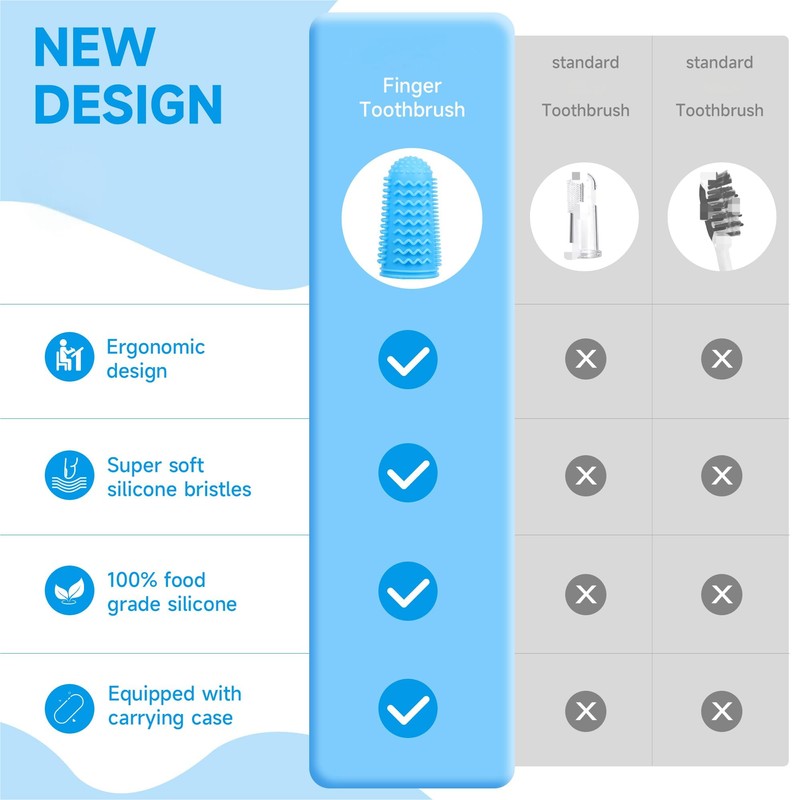 - SURROUNDING SILICONE SOFT BRISTLES: Our baby finger toothbrush has surrounding silicone soft bristles with 13 times more bristles than other baby finger toothbrushes. The baby finger toothbrush is made of soft silicone bristles that gently clean teeth without damaging gums. Silicone baby finger toothbrush is easy for mom or dad to clean baby's teeth and gums from any angle, reducing the need for brushing. Our silicone baby finger toothbrush is perfect for brushing baby's teeth from 0-36 months.