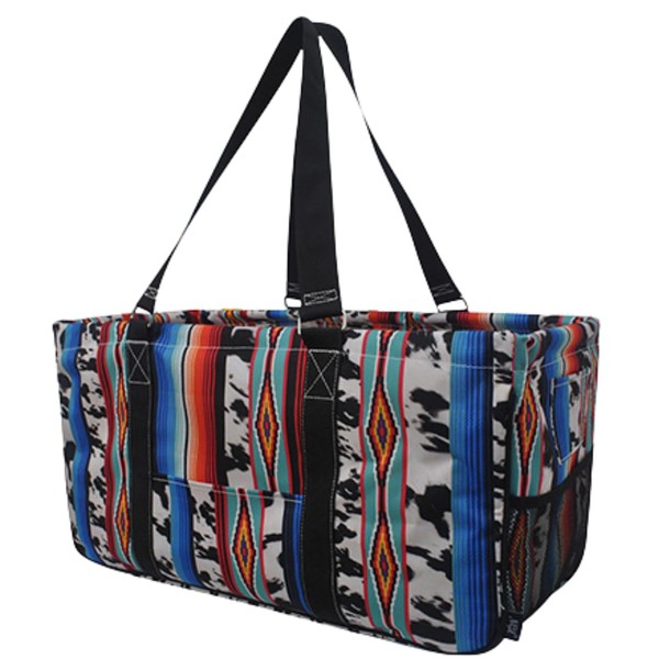 NGIL Extra Large Utility Tote Reusable Grocery Bag Oversized Collapsible for Groceries, Storage, Picnic, Beach (Cow Serape-Black)