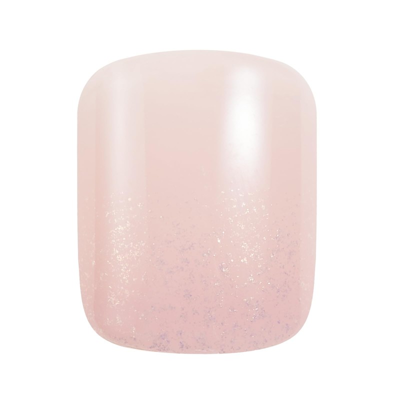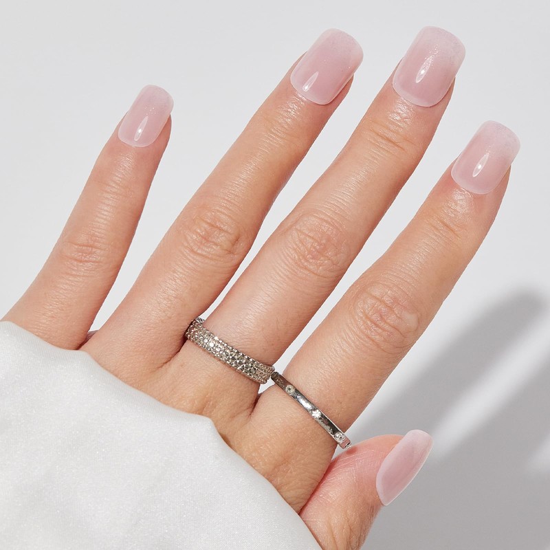 NGOZI eziezi No Glue Mani Press On Nails, Ready to Wear Manicure, Self Stick Nails, Stick on False Nails Square, Short Press On Nails, 12 Sizes - 24 Pcs, Half Shimmer Pink