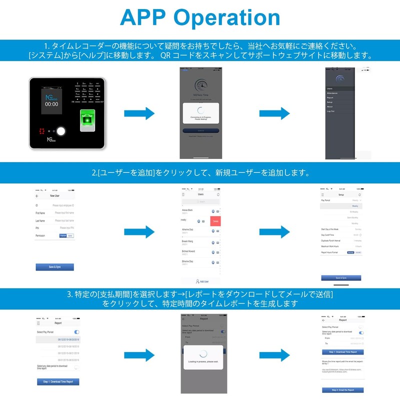 - (Wi-Fi Connectivity for Easy Management) Compatible with 2.4 GHz Wi-Fi network, no wiring required. The "NGTeco Time" smartphone app allows users to register and check exit data and download reports. Please note that the phone and device need to be connected to the same 2.4GHz WiFi