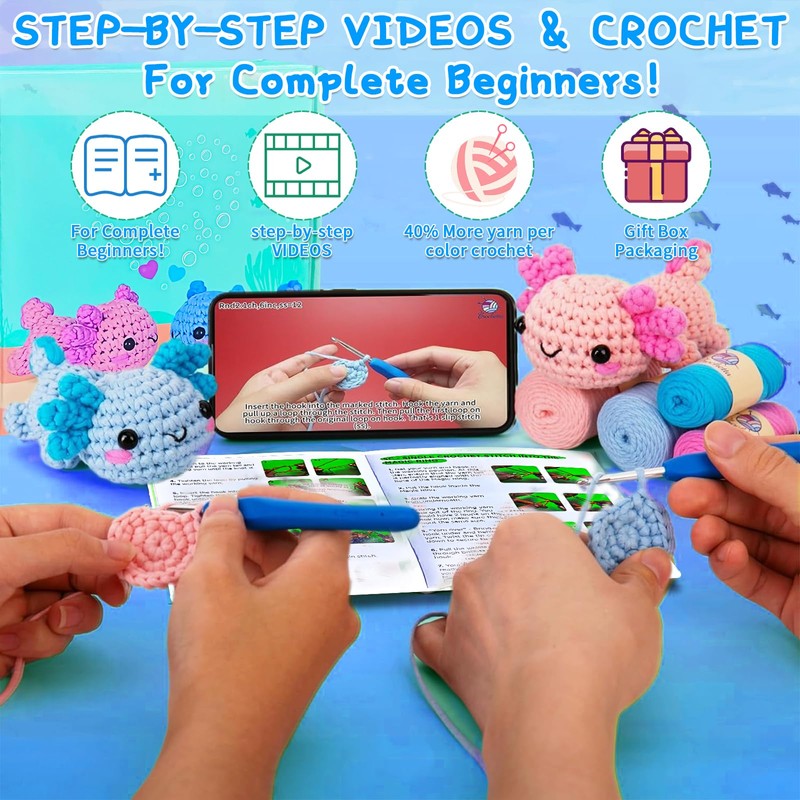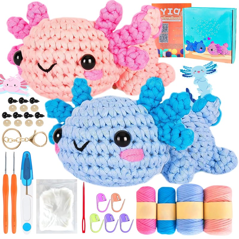 Nhcuijun Crochet Kit for Beginners - Salamander Knitting Kit with Step-by-Step Video Tutorial, Crochet Kits for Beginners Adults & Kids, DIY Knitting Supplies (Axolotl Crochet kit)
