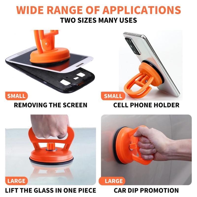 • 💎【Wide Application】: These suction cup dent removers are not only used as a tool for repairing dents in cars,And it can be used as the door/window handle, cell phone holder, and so on. Good adhesion, Suction cups are ideal for dent removal, body repair, good at moving furniture, glass, tile, etc.